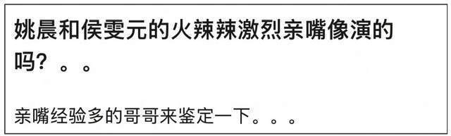 在《以美之名》中,姚晨和侯雯元饰演一对情侣,两人有大量的感情对手戏,一些亲吻镜头动作激烈,台词露骨,遭到网友吐槽“不像演的”。