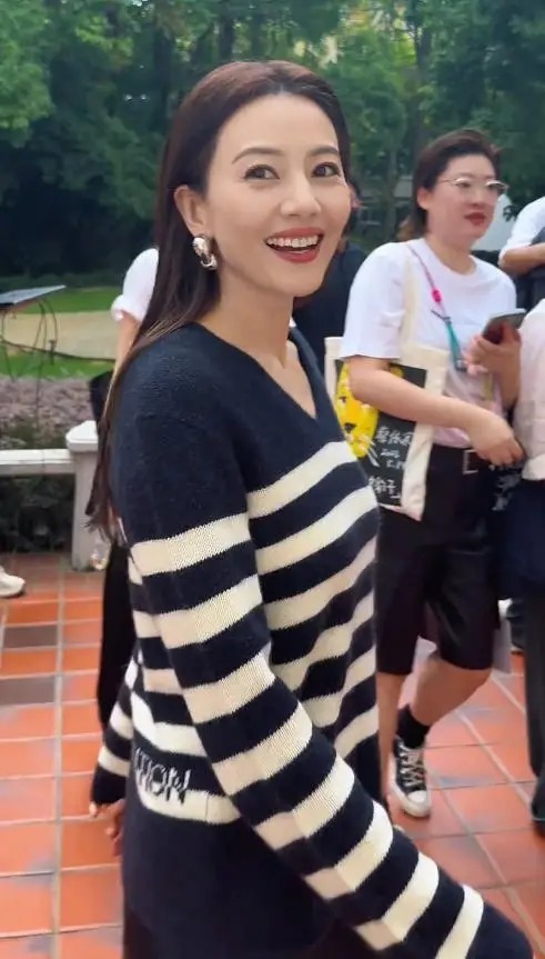 路人拍的视频中,她走路从容,偶尔与身边工作人员低声交谈,眉眼间满是温柔,毫无明星架子。